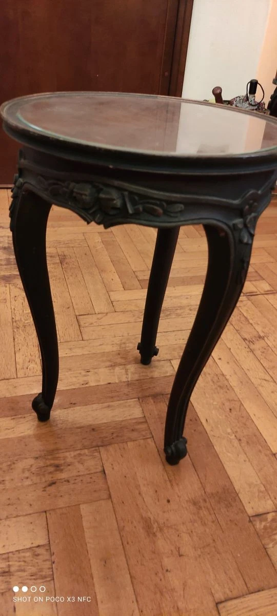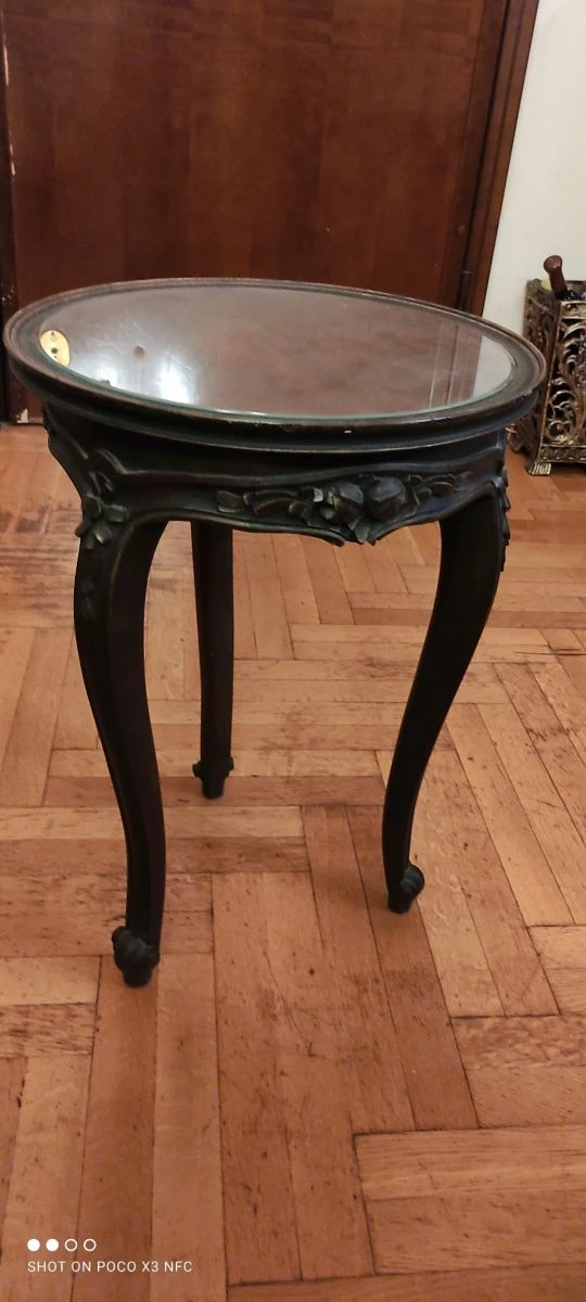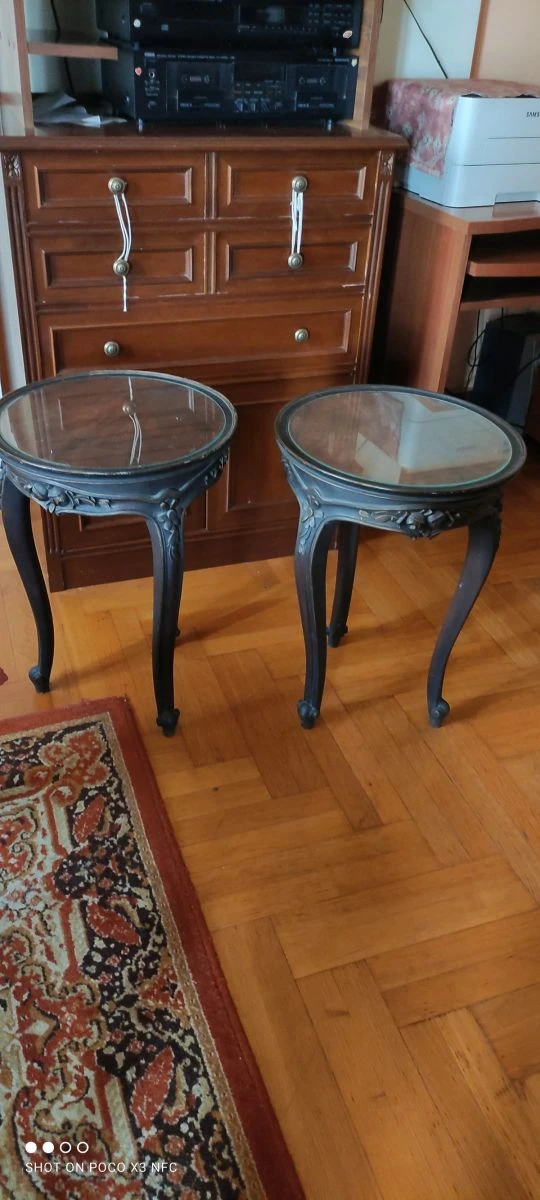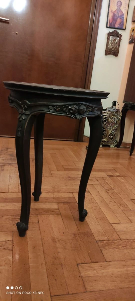Δύο ίδια τραπεζάκια αντίκες από ξύλο μασιφ σκαλισμένα χειροποίητα. Το καθένα 50 ευρώ.