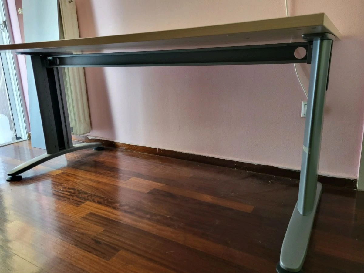 ΓΡΑΦΕΙΟ εργασίας Sato με σκελετό και μετώπη σε απόχρωση γκρι και επιφασε απόχρωση φυσικό δρυς, μεταλλικός σκελετός, σκελετός απόχρωση γκρι επιφάνεια απόχρωση επιφάνειας μελαμίνη πάχους 25 mm σε απόχρωση φυσικό δρυς, διάσταση 160 x 80 x 73