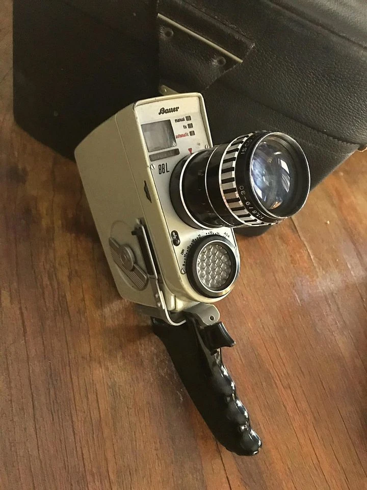 Κάμερα Bauer 88L σε άριστη κατάσταση δεκαετίας του 1960, βαρύ κομμάτι μέσα στη δερμάτινη θήκη της -δε γνωρίζω αν λειτουργεί- υπέροχο αντικείμενο συλλογής κ διακόσμησης