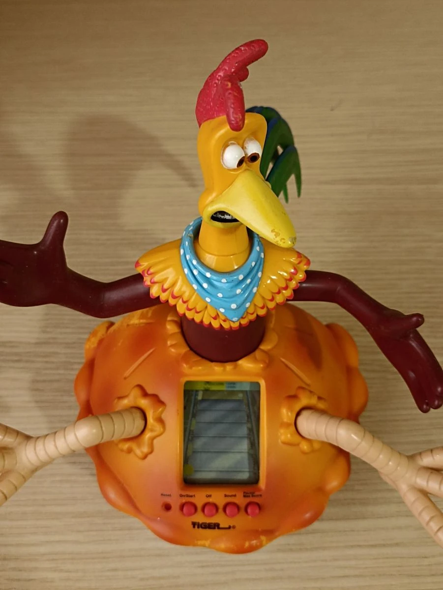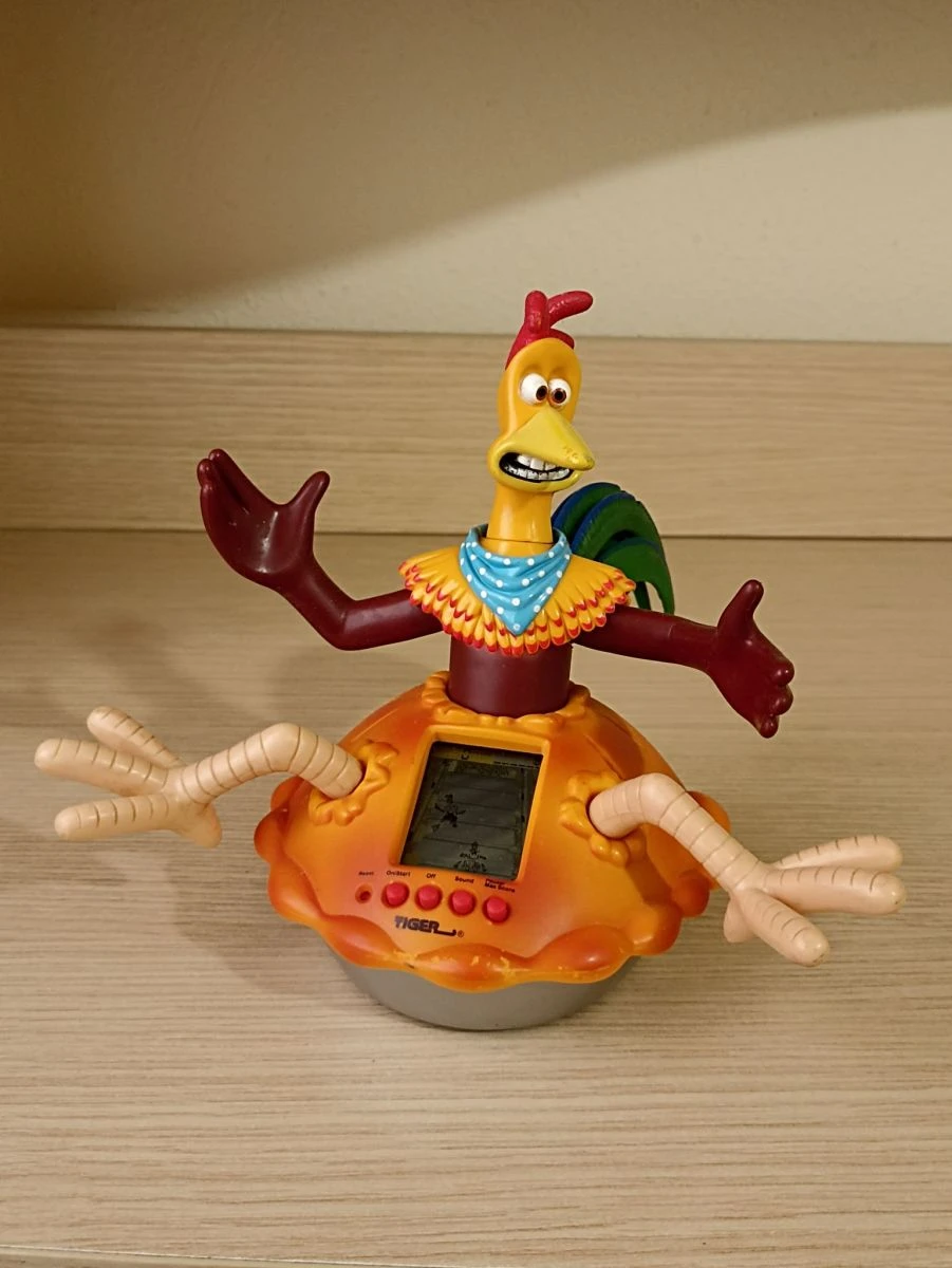 Chicken Run Tiger Electronic 2000 κονσόλα χειρός, οθόνη LCD, λειτουργεί με δύο μπαταρίες.