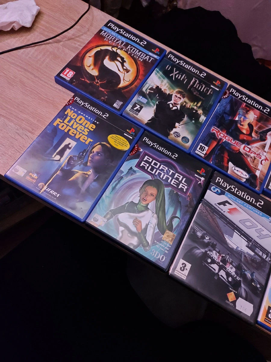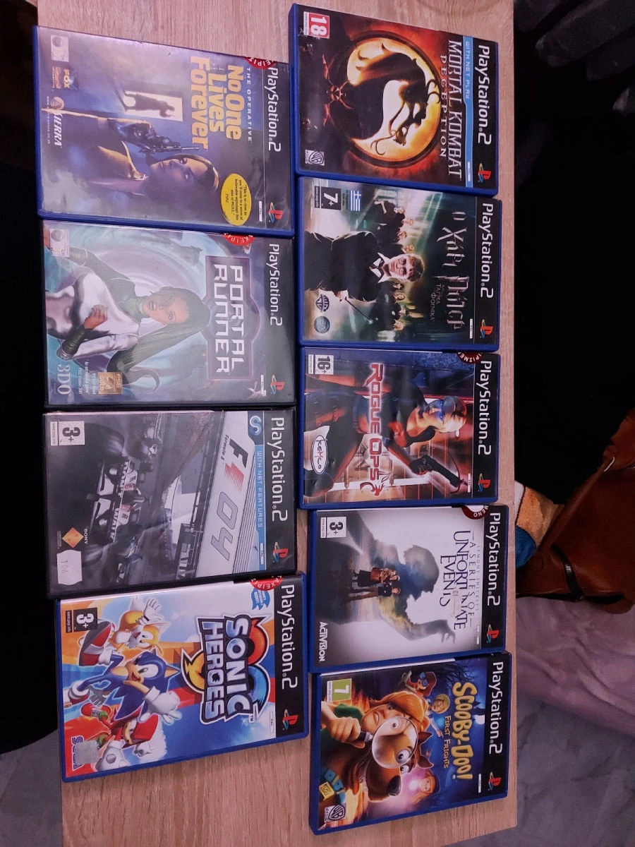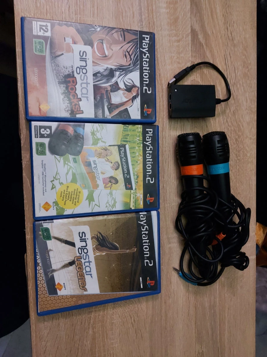 playstasion 2 slim τσιπαρισμένο και διαφορα παιχνίδια. 2 χειριστήρια (1 αυθεντικό sony και 1 αγορασμένο από πλαίσιο), 2 μικροφωνα για παιχνίδι singstar και μια κάρτα μνήμης 8 MB. Πωλούντε όλα μαζί αλλα και ξεχωριστά.