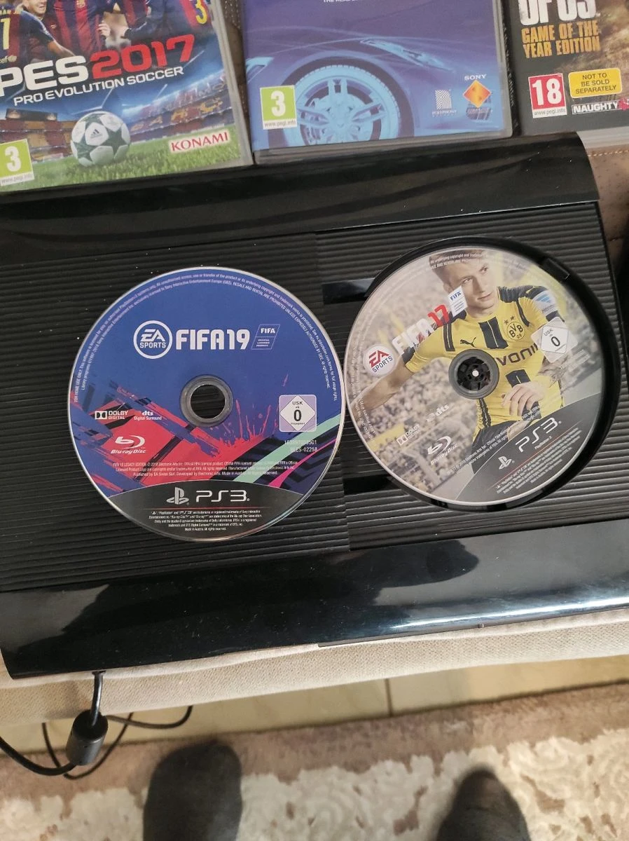 ps3 σε καλη κατασταση με 6 παιχνιδια που περιέχουν fifa 17/ fifa 19