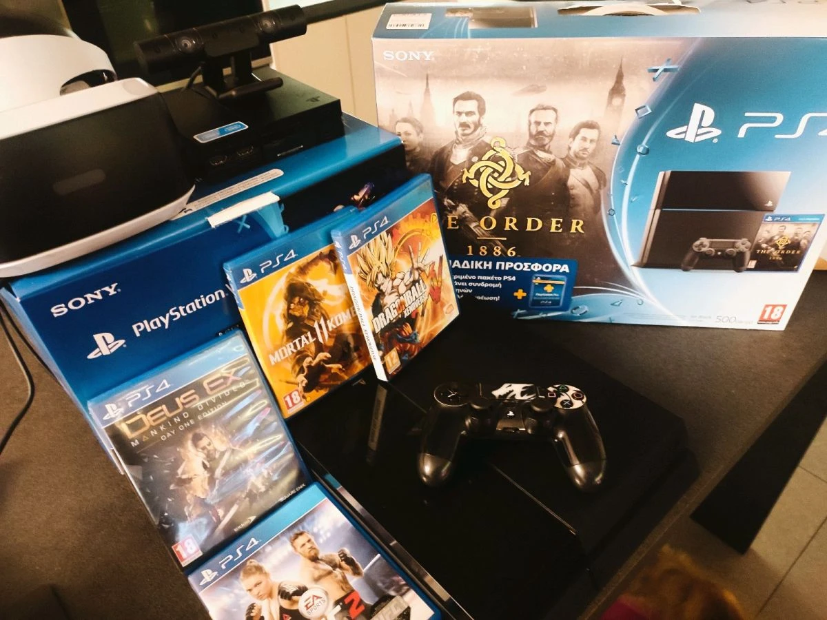 Το PS4 είναι καθαρισμένο και έχει αλλάξει πάστα επεξεργαστή προληπτικά σε τεχνικό για αρκετά χρόνια ζωής ακόμα όπως επίσης και ο μοχλός…Το Vr είναι στα μαξιλάρια σε μέτρια κατάσταση αλλά λειτουργεί άψογα..Μαζί και η κάμερα και 5 παιχνίδια τα 4 της φωτό και το Resident Evil 7 VR(δεν είναι στη φωτό)… Όλα μαζί με τα κουτιά σε άριστη κατάσταση με τα χαρτιά τους ακόμα και τα νάυλον…