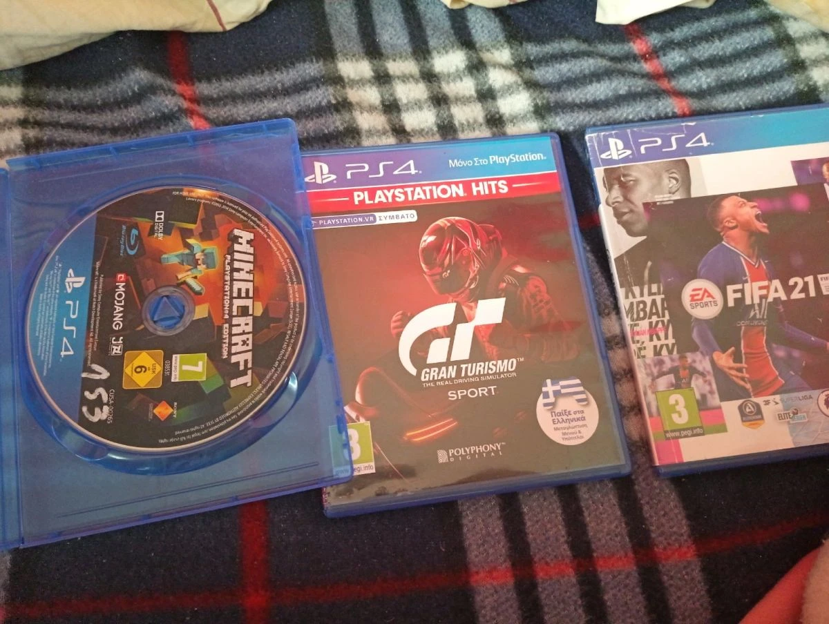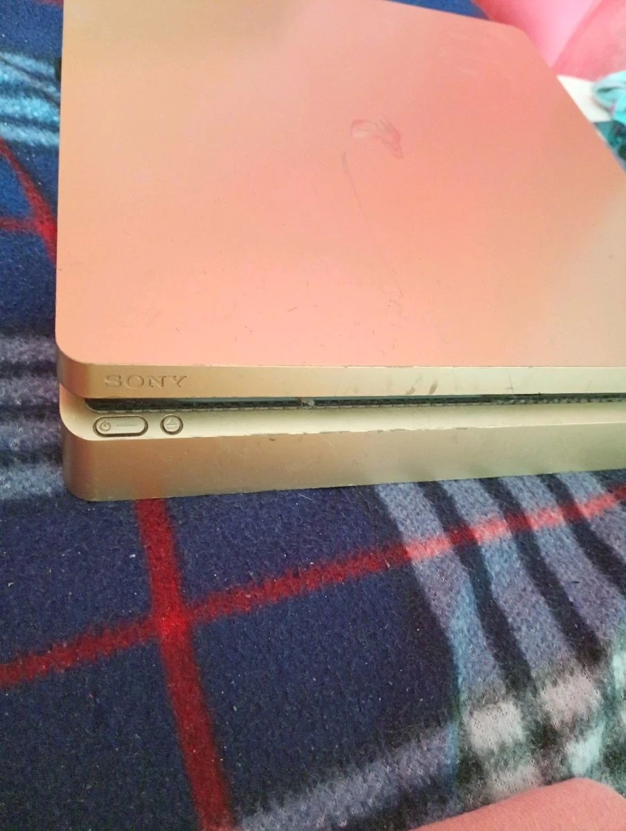PS4 gold limited edition (discontinued) μεταχειρισμένο με 2-3 τηλεχειριστήρια και 4 παιχνίδια μαζί με HDMI και καλώδιο τροφοδοσίας