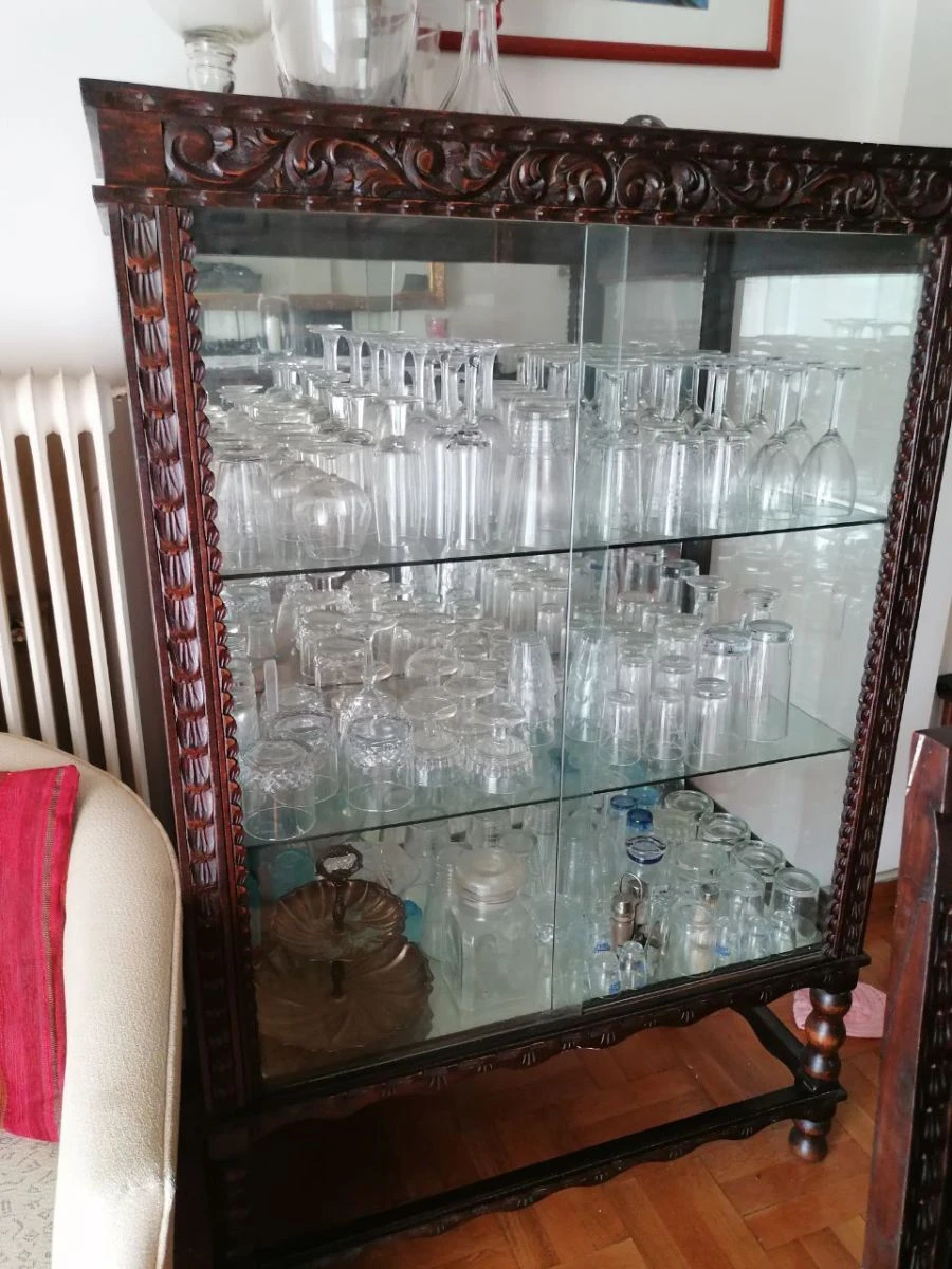 1 x Βιτρίνα (ΜxΠxΥ): 91,5×50.5×140.5-148.5 cm (διακοσμητικό στη πλάτη της βιτρίνας)