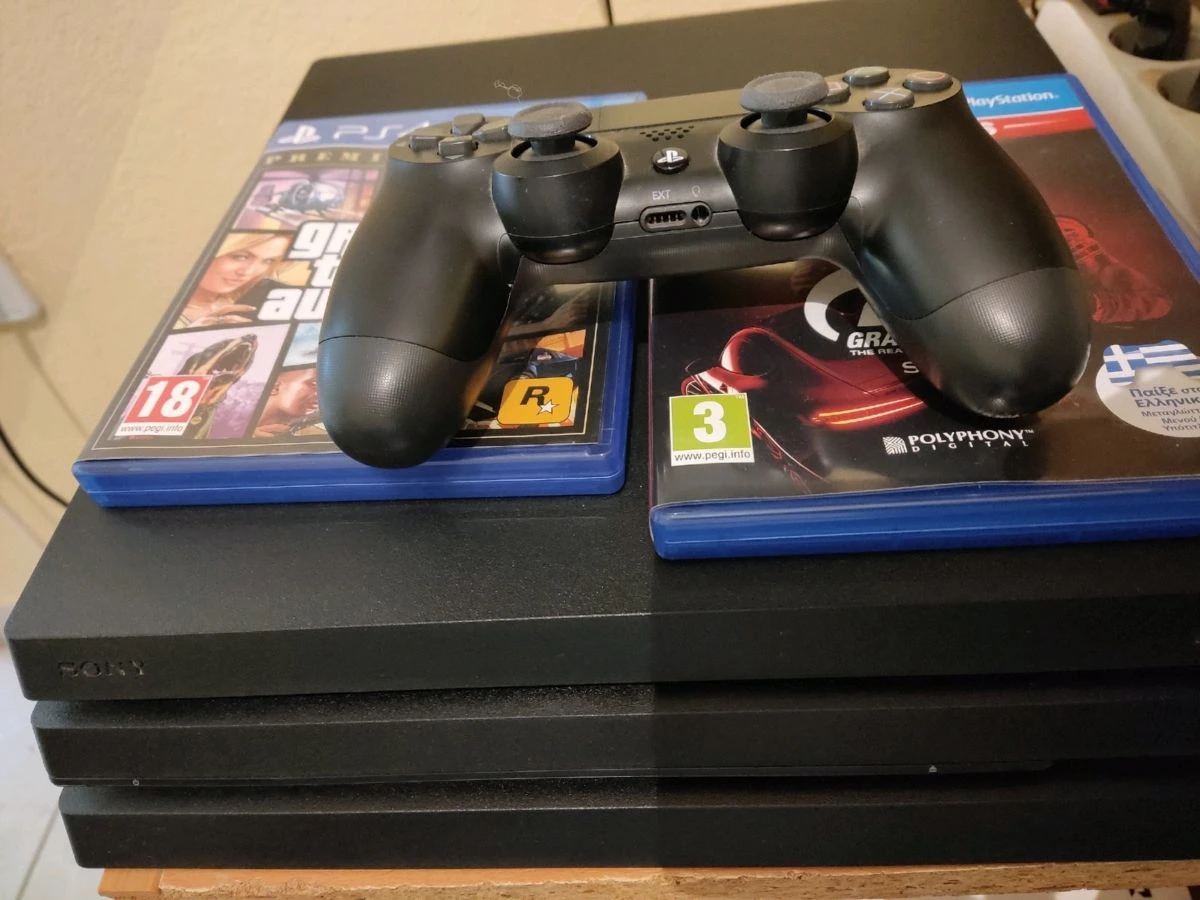 Sony Playstation 4 Pro 1 TB 2020 1 τηλεχ/ριο. Το εχω χρεισημοποιηση 1 βδομαδα απο την ημερα που το αγορασα , ειναι καινουριο με γνησια καλωδια . Αγορα εκανε 420 με τα παιχνιδια μαζι .