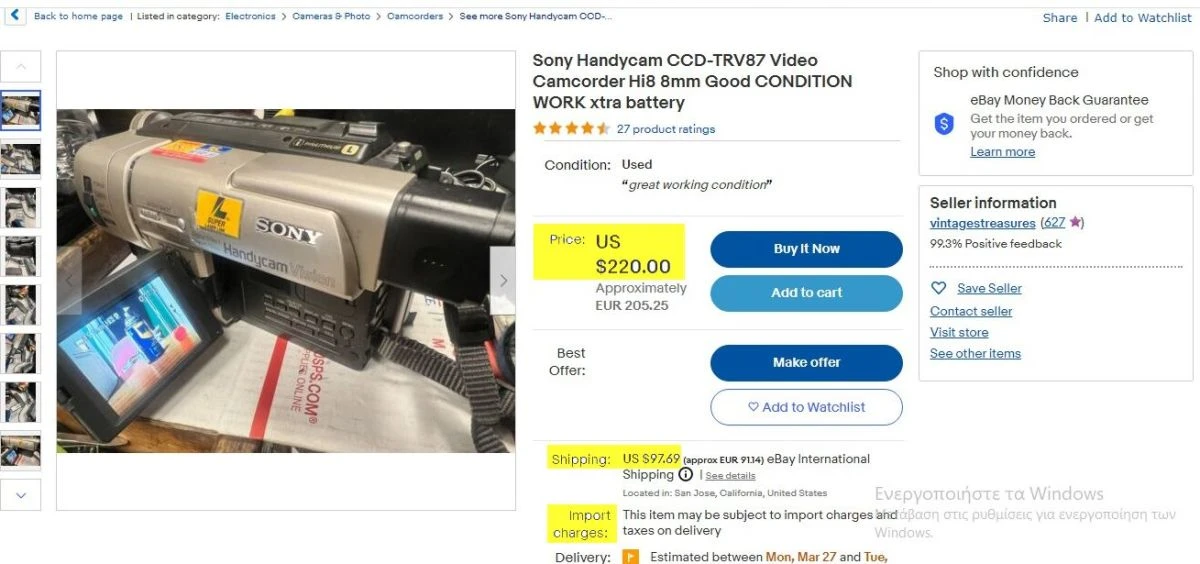 χωρίς να υπολογιστούν οι δασμοί εισαγωγής (screenshot)